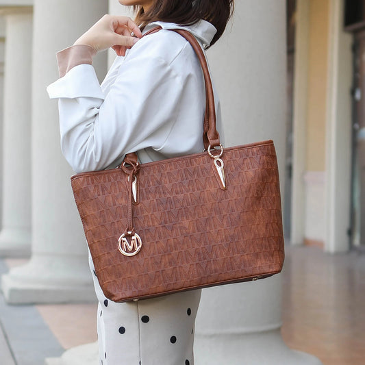 Edelyn Embossed M Signature Vegan Leather Women’S Tote Bag – 4 Pcs Set by Mia K -