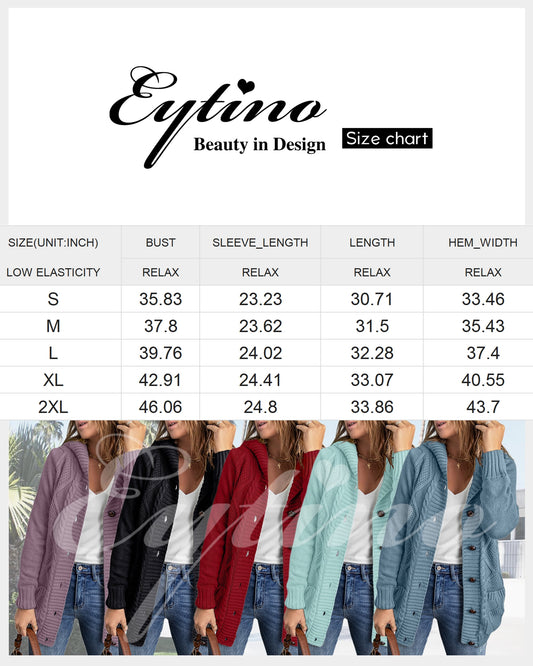 Hooded Cardigan Sweaters for Women Long Sleeve Button down Knit Sweater Coat Outwear with Pockets