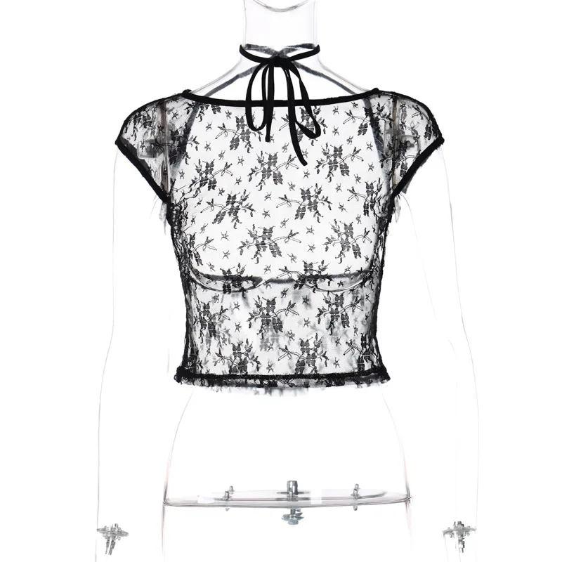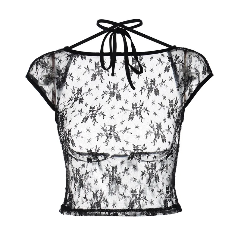 New-Style Spicy Girl Style Sexy Lace Backless Necktie Crop Top T-Shirt,Street Sexy Cut-Out Lace Top Sexy Club Clothes